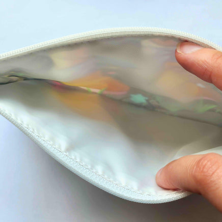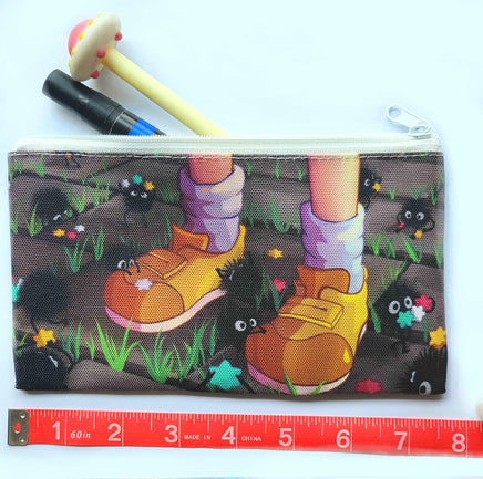 Pencil case is printed on white canvas which is 100% cotton and has a white lined inside. The design is printed on both sides. All pencil cases are 18 x 10.5 cm or approximately 7 x 4 inches, so they can easily fit pencils and pens.