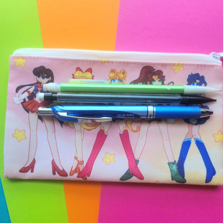 Pencil case is printed on white canvas which is 100% cotton and has a white lined inside. The design is printed on both sides. All pencil cases are 18 x 10.5 cm or approximately 7 x 4 inches, so they can easily fit pencils and pens.
