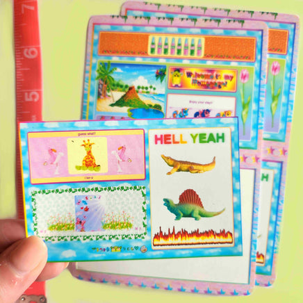 Matte 4" x 6" sticker sheet with 2 stickers available on it. I had a hard time figuring out how to divvy up the web page because it has so many little details on it, but figured the large blocks would be best so people can cut them up to use what they please !