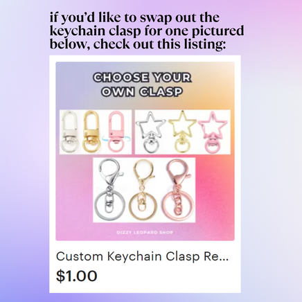 If your keychain appears to have scratches on it, fret not! It's likely just the clear plastic film that can be peeled off. If you'd like for me to peel it off before shipment, please check the box when adding it to your cart.