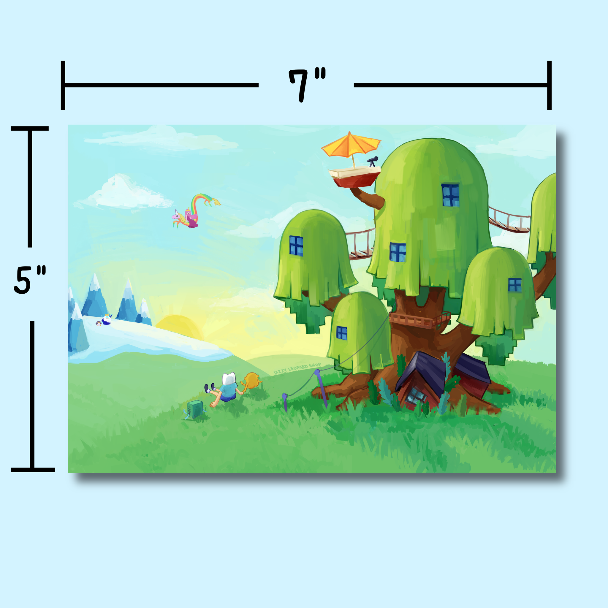 This print is 5" x 7" on semi-matte paper. All prints are sent in plastic sleeves for water protection and mailed in a cardboard mailer. Both are recyclable!